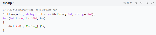 Dictionary基于哈希表实现,通过计算键(Key)的哈希值确定元素存储位置,理想情况下查找、插入的时间复杂度为 O (1)。但如果哈希值冲突严重,会退化为链表结构,性能降至 O (n);同时,Dictionary也有容量和加载因子(默认 0.72)的限制,达到阈值时会触发扩容和重新哈希。二、List高效使用技巧