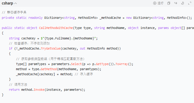 三、性能优化:反射慢?这样解决!1. 缓存反射结果(最有效)