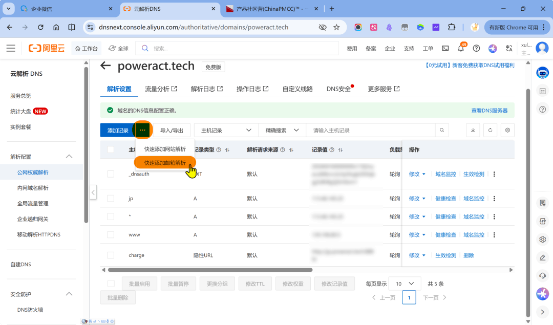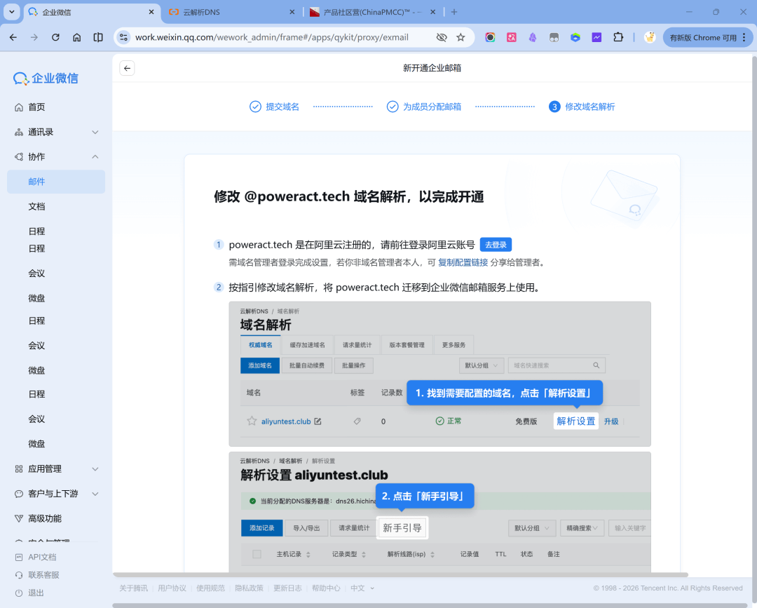等待几秒继续下一步,最后会让我们添加域名解析。