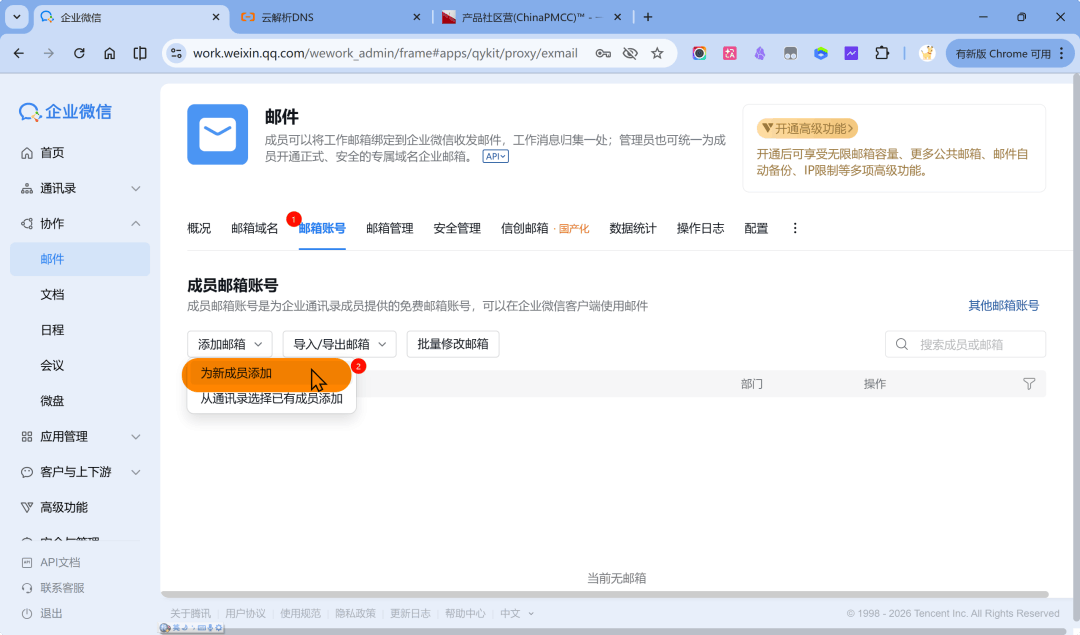 为新成员添加企业邮箱