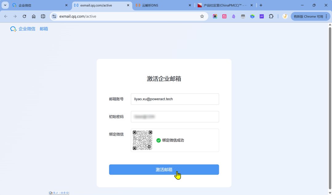你已激活邮箱,如需使用多个邮箱地址,可在「企业微信管理后台-邮件-邮箱管理」设置别名邮箱或公共邮箱
