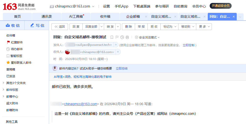 它用您拥有的域名(例如 yourcompany.com)替换了公共邮箱服务商的后缀(如 @gmail.com、@qq.com)。