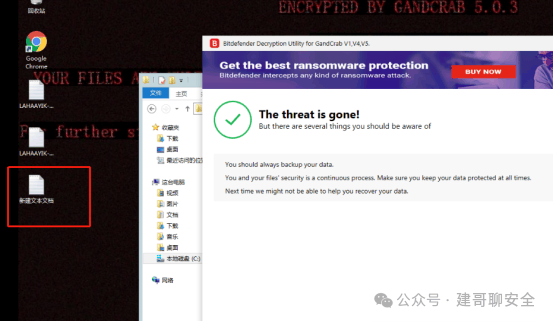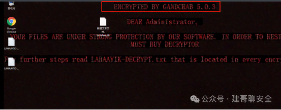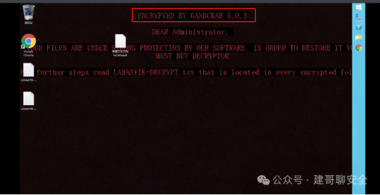 确定中了勒索病毒 二、查看桌面提示关键字通过桌面背景发现加密关键字 ENCRYPTED BY GANDCRAB 5.0.3