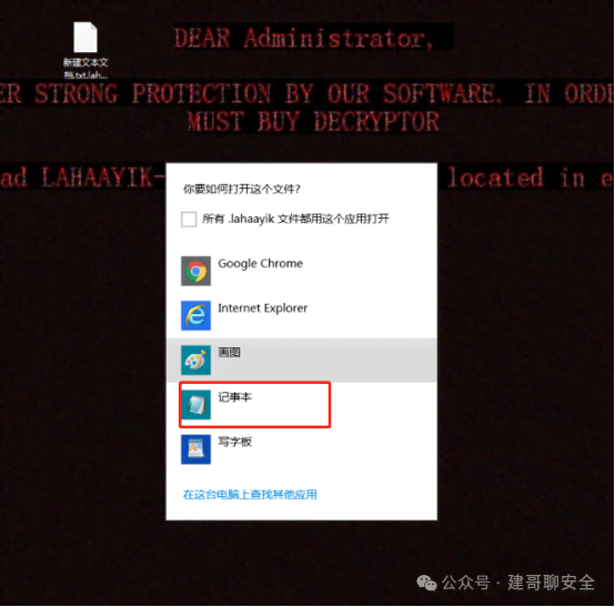 初步可以判断,系统已经中了勒索病毒 尝试用记事本,打开桌面的文本文档