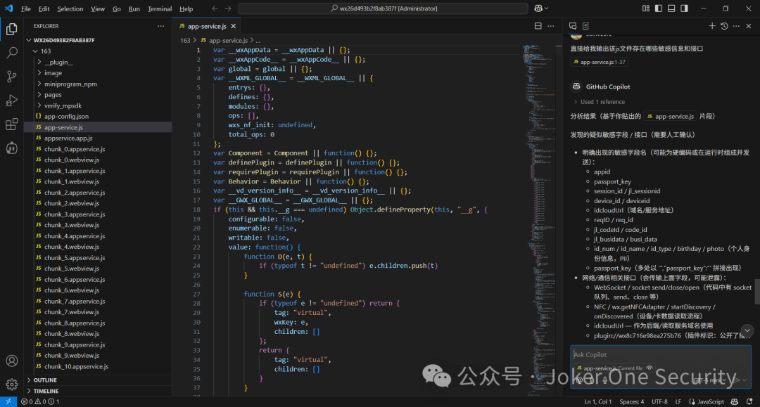 /*本文仅用于技术讨论与学习,利用此文所提供的信息而造成的任何直接或者间接的后果及损失,均由使用者本人负责,文章作者及本公众号不为此承担任何责任。*/利用工具wxapkg下载地址: https://github.com/wux1an/wxapkg ![]() 使用方法![]() 滚轮或上下键选择要反编译的小程序,选择后按enter健即可 ![]() 会自动在工具目录生成反编译后的前端源码 ![]() 打开反编译后的文件,在此处起一个python服务 ![]() 打开浏览器进行访问,利用浏览器插件进行匹配敏感信息和接口 ![]() 或者说利用ai进行分析,借助vscode打开该反编译后的文件,推荐使用openai模型,他目前是全球分析能力最强的一个大模型 阅读原文:https://mp.weixin.qq.com/s/75AAQoCiGnCH2Ahv-6o-rQ 该文章在 2026/2/11 16:12:01 编辑过 |