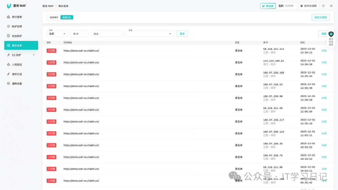 简介SafeL是一款开源免费的自托管Web应用防火墙(WAF),旨在为Web应用服务提供一层安全防护屏障,可有效防御各类非法恶意攻击。它提供了访问频率限制、人机验证、动态防护等核心功能,通过过滤和监控Web应用与互联网之间的HTTP流量来保护Web服务,可有效抵御各类SQL注入、XSS、代码注入、命令注入、CRLF注入、ldap注入、xpath注入、RCE、XXE、SSRF、路径遍历、后门、暴力破解、CC、爬虫等攻击,保护用户资产不受侵害。 SafeL的防护效果不仅仅只是纸上谈兵,截止目前为止,在全球装机量已经超过30万台,日均处理300亿次请求,检出率76.17%,误报率仅0.22%。 它支持容器化部署(Docker 、Docker-compose)和自有服务器部署2种方式,用户可基于需求灵活选择,作为自托管WAF,用户可对流量、日志、配置完全掌控,不依赖任何第三方SaaS,适合对数据隐私、安全性有较高要求的个人和团队,可应用于个人网站、企业网站、企业各类服务,大型Web应用等多种场景。