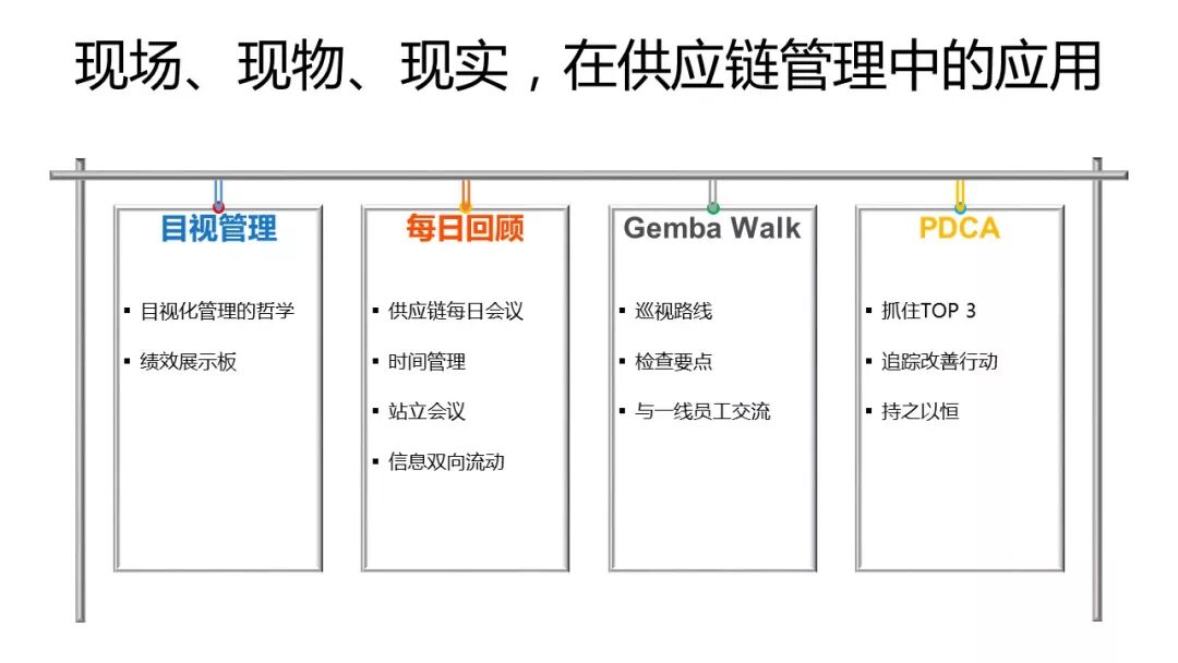 “三现主义”(San Gen Shugi)起源于日本的制造业。所谓“三现”,指的是: 现场(Gen-ba) 现物(Gen-butsu) 现实(Gen-jitsu) 三现主义可以理解为: 了解真实发生了什么, 去到它发生的现场, 检查真正的原因。 三现主义是一个很经典的方法论,提供了寻找和解决问题的一揽子方案。它可以直戳我们企业管理中的痛点,避免了人为主观因素在解决问题过程中的干扰。 在供应链管理的日常工作中,管理者如何进一步实践三现主义?在接下来的文章里我为大家介绍让理念实现落地的方法。 ![]() 目视管理一、目视化管理的哲学 关于目视化管理有一句至理名言:“我有二样工具,那就是我的双腿和双眼,它们可以让我来发现、判断、思考和决策问题。” 1. 收集信息 目视化管理强调一切的事物都是可以一目了然的,所以也被称为可视化管理(Visual management)。 人眼收集的信息,占了五感(五种感觉器官:视觉、听觉、嗅觉、味觉、触觉)总共收集信息量的87%。目视无疑是收集信息最强有力的工具。 ![]() 归纳下来总共有六个方面可以通过目视化管理来收集信息: 人(Man),人员的能力矩阵。 机(Machine),机器运行的状态。 料(Material),仓库原材料和成品、车间在制品库存。 法(Method),作业指导书。 环(Environment),温度湿度的监控。 量(Measurement),检具测量情况。 ![]() 2. 快速反应 如果在生产现场发现了异常的情况,比如设备故障导致产品不良率飙升,操作工人应当立即停止生产活动,产线的报警灯开始预警。 ![]() 生产主管来到问题现场,查看造成异常的问题,采取行动防止不良品流出,尽快解决问题,并安排恢复生产。 3. 立即改善 对于现场发现的问题,在找到问题的根本原因以后,管理者应该立即采取改善的行动,防止重复的问题再次发生。 有问题不可怕,可怕的是在同一个问题上重复地犯错。 如果不能采取改善行动,“攻击”问题发生的根本原因,那么今后难免还是会在同样的地方继续犯错。 改善的过程可能比较艰苦,但是一旦成功以后就可以一劳永逸地解决问题。从长期的效果来看,改善行动还是非常值得去做的。 二、绩效展示板 绩效展示板也叫Indicator board,顾名思义就是把各个部门或是个人的绩效指标统计在同一块展示板上。 在绩效展示板上,通过量化的方式,把工厂内部每月或每日的实际运行情况展示出来。 1. 一个都不能少 每一个部门、职能小组和个人都有自己的绩效指标。如果借用微信公众号平台的广告语,那就是“再小的个体,都有自己的Indicator”。 绩效指标既是一种责任,也是展示业绩表现的平台。 2. 信息共享 绩效展示板是一个与其他部门和同事分享信息的平台,在这里可以看到各个职能部门的运营表现,有些是和自己的工作有密切关联的。 比如仓库会记录前一个工作日的收货入库情况,有多少家供应商送货,有多少是在规定时间窗口送达的,是否有多于或少于订单数量的情况等等。 物料计划员会特别关注这些信息,如果有送货的异常情况,他就会去向仓库了解具体的问题,并相应地采取措施来遏制问题继续扩大。 3. 异常报警 每一个绩效指标都有目标值,如果实际结果是在目标范围之内的,指标的负责人就无需通报情况,只需要在绩效展示板上记录数据就可以了。 如果超出了范围,那么负责人就应当根据既有的流程,先记录下异常的数值,分享在绩效展示板上,并向上级主管汇报具体情况。 比如生产计划达成率应该是在90%以上,但是前一天只完成了70%,这个指标的负责人 — 生产计划员就需要在绩效展示板上写下70%的达成率,在调查清楚情况以后,汇报给其主管。 每日回顾现在,制造业工厂面临的挑战越来越多。比如客户的订单模式从少品种、大批量逐渐转变为多品种、小批量。 市场趋势的变化倒逼着制造业做出改变,来适应新形势下的竞争要求。 工厂需要每天都来回顾前一日的运营表现,需要知道交付了多少的客户订单,完成了多少的生产计划,仓库里有多少天的库存。 这些数据都反映了工厂运行最核心的内容,包括了销售、设备利用率和现金流。 如果每隔几天来回顾这些核心数据的话,一旦这段期间某些数值没有达标,那么工厂很有可能会错失了立即改善和弥补的机会。 所以,在高效率和标准化的工厂内,每日回顾是一项基础的工作。有任何的问题,都将会在第一时间内得到处理和解决。 供应链部门作为一个肩负着大量运营业务的部门,也必须要进行每日回顾。 ![]() 供应链每日会议 说起开会,很多人的第一印象可能是会议的时间长、效率低。一个短会可能要半个小时,稍微长一点的大概要持续一、二个小时。 在会上真正涉及到自己的事情可能就那么一点儿,但是还得要全程都参与,就怕万一错过些什么重要的信息。 供应链部门每天都有很多常规的业务和一些突发的紧急情况要处理,如果按照上述的方式来开例会是行不通的。 在供应链的每日回顾中,需要来review部门在前一个工作日中的关键指标。这些Indicator全部都显示在部门的绩效展示板上。 ![]() 供应链部门每日回顾哪些绩效指标? 会议怎么开才能够做到高效? 发现了异常情况后要怎么处理? 每日例会 部门例会在每天上午10:30召开,每个人都在开会的时候,和整个团队分享前一个工作日的绩效指标。 ![]() 这位帅哥Mikael是负责持续改善Continuous improvement(CIM),他讲的主要有这些内容: 1.安全Safety issues。安全在制造业工厂