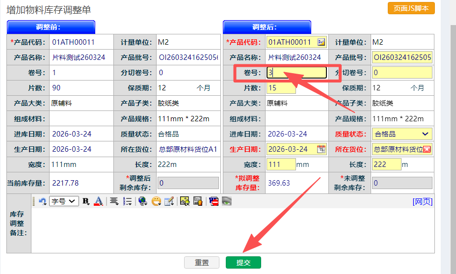 点晴模切ERP在库调整-片料库存拆分如何操作?