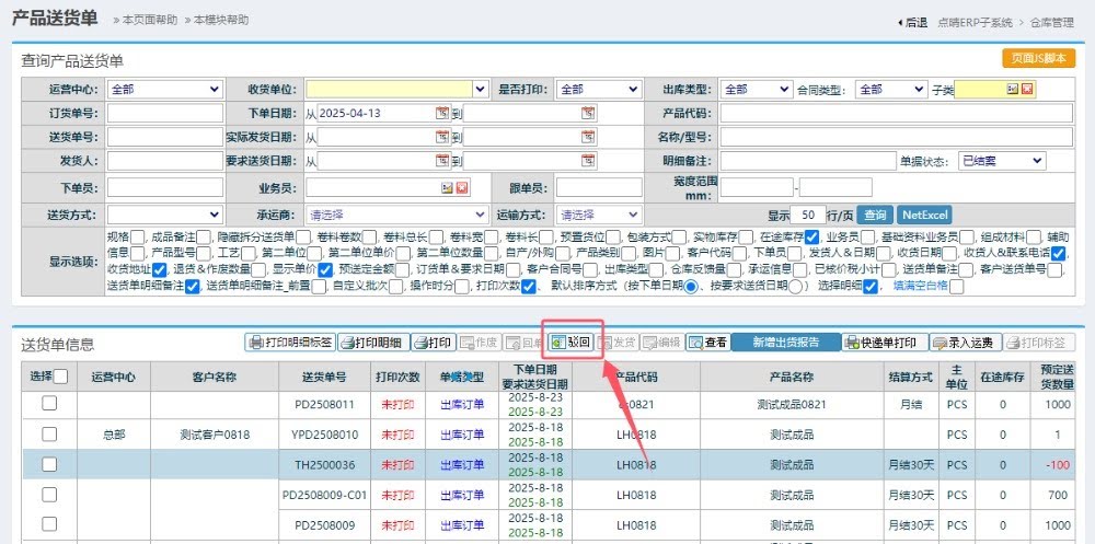 点晴模切ERP已经结案的送货单怎么修改实际送货或收货数量?