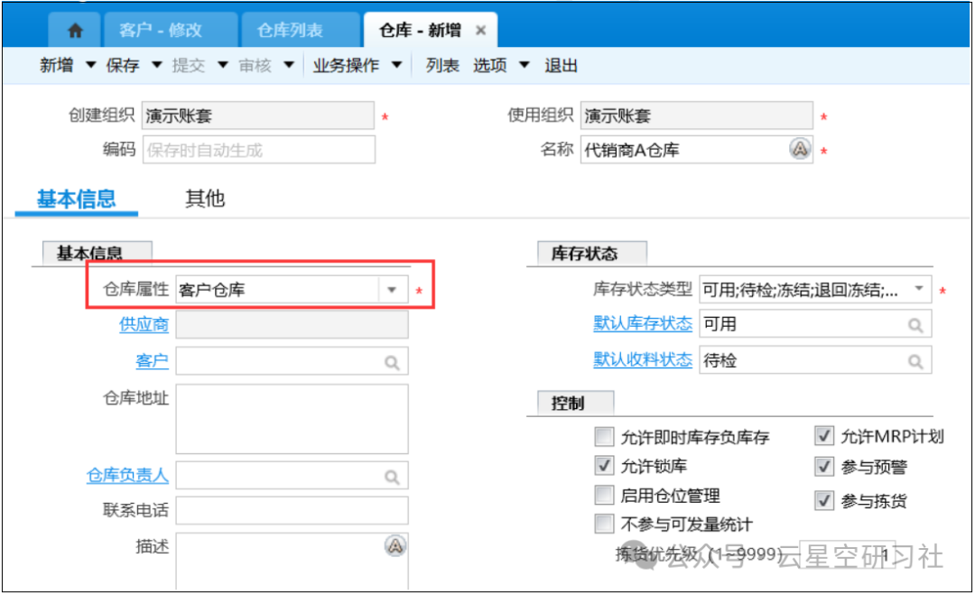 💡 小贴士:客户仓库是寄售业务的核心,它代表货物已经发出但仍在代销商处,物权仍属于你。