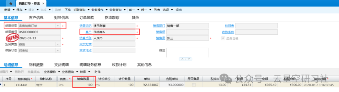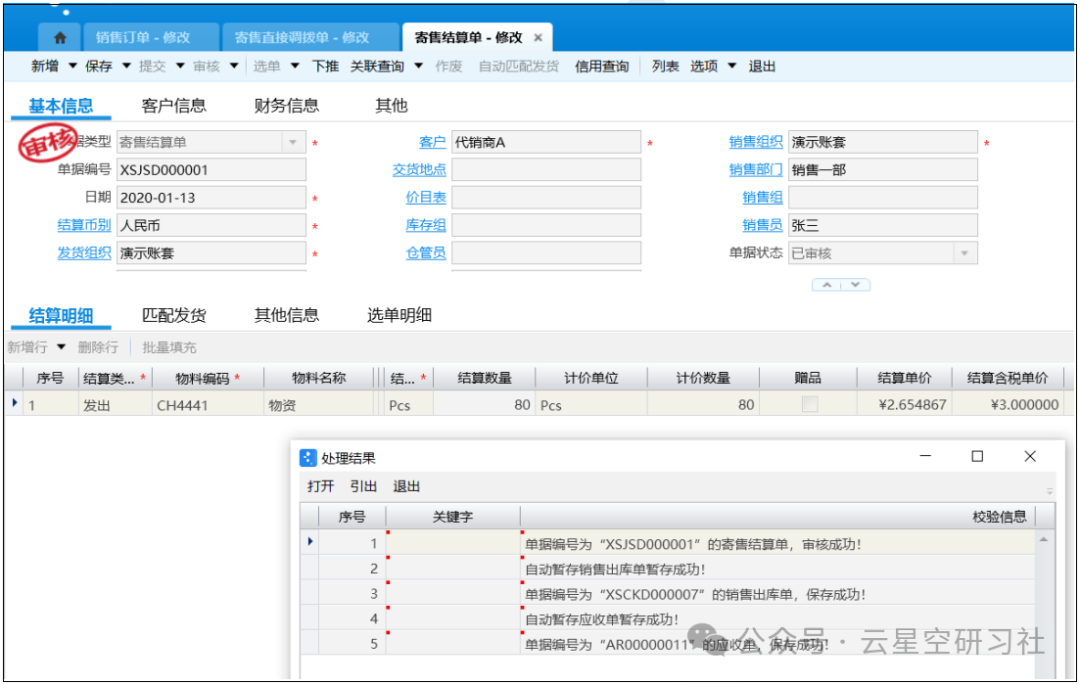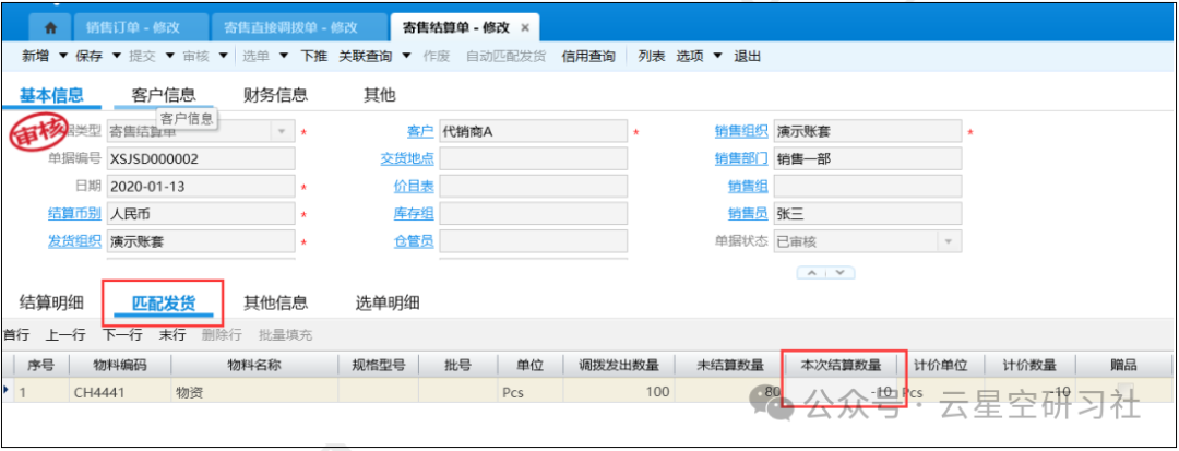 [点晴模切ERP]金蝶云星空销售寄售(先发货,后结算)业务流程及账务处理