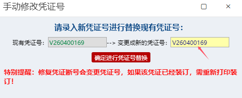 过账后,如果再次新增了凭证或者作废凭证。需要进入凭证管理,手工修改凭证号补充断号。