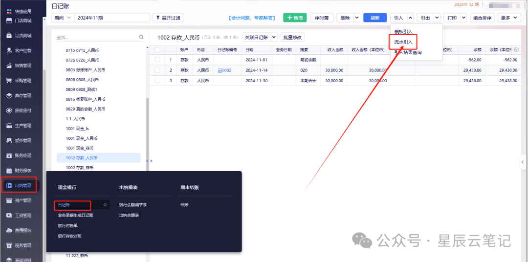 金蝶云星辰出纳流水导入后可以直接生成凭证吗?
