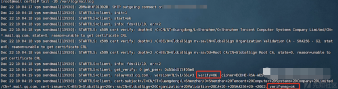 看到接收方邮件服务器验证 verify=OK 即可。微信搜索公众号:Linux技术迷,回复:linux 领取资料 。