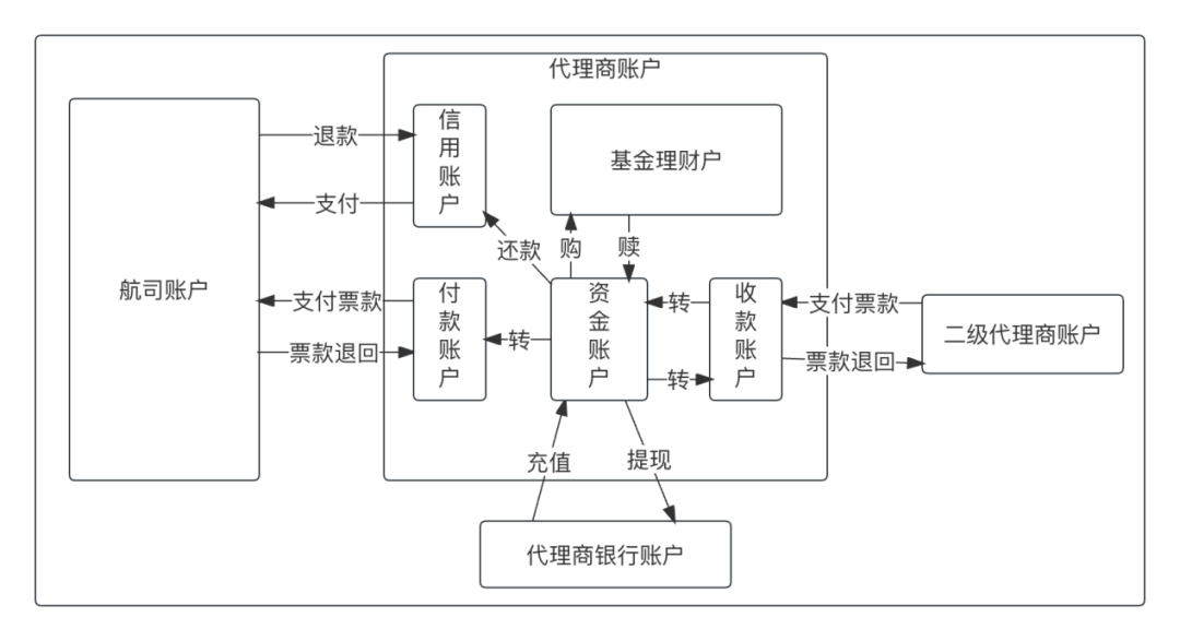了解一个公司的清结算所涉及的全量业务环节,才能彻底明白,如何下手搭建清结算体系,涉及哪些系统,这些系统之间都有什么关系,将上图浓缩抽象以后,清结算涉及的资金处理业务如图所示。