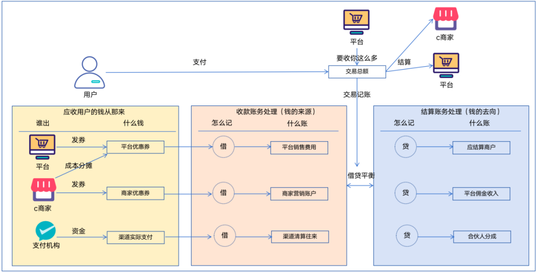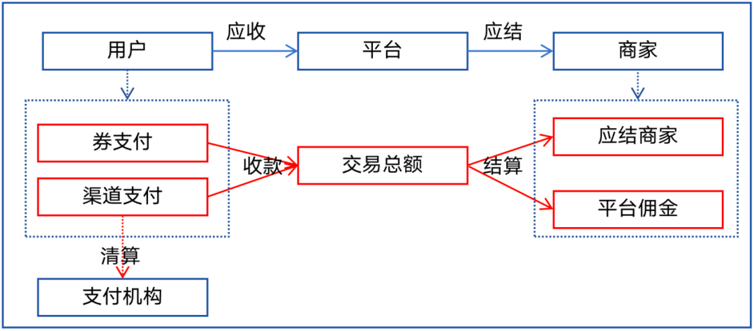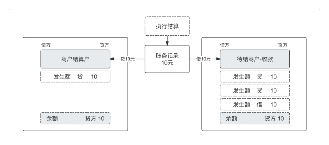 • 交易核心登记商户待结算、各类营销类记账;