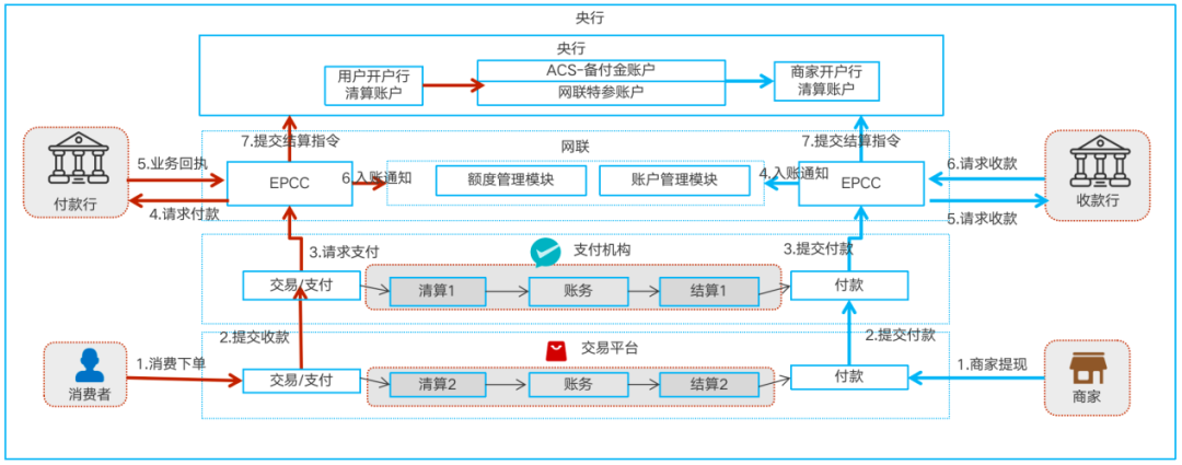 央行的账户与支付比较密切的就是三方备付金账户以及银行和网银联的清算账户,跨机构支付清算在这些账户之间完成最终的资金清算。