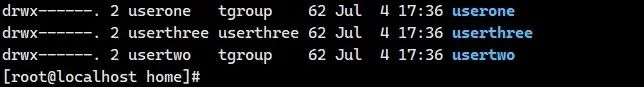 登录userthree后无法执行,因此此用户不在tgroup组中,如图: