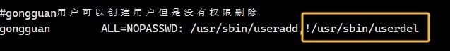 | ALL | 所有命令,NOPASSWD表示无需输入密码 |