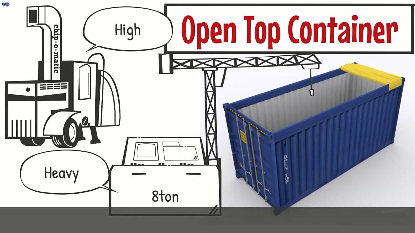 开口集装箱就像没有天花板的干货集装箱。由于没有天花板,它适用于高大的货物。由于是顶部开口,也便于把沉重的货物从顶部放入集装箱。装载重的货物是不容易的,普通的3到5吨的叉车是不能装载的。但在工厂里,使用高架起重机或清障车从集装箱的顶部进行装载,并不是那么困难。开口集装箱看起来没有天花板,很多人担心货物会被雨淋湿。但事实上装货完毕后,天花板就被盖上了,所以无需多虑。