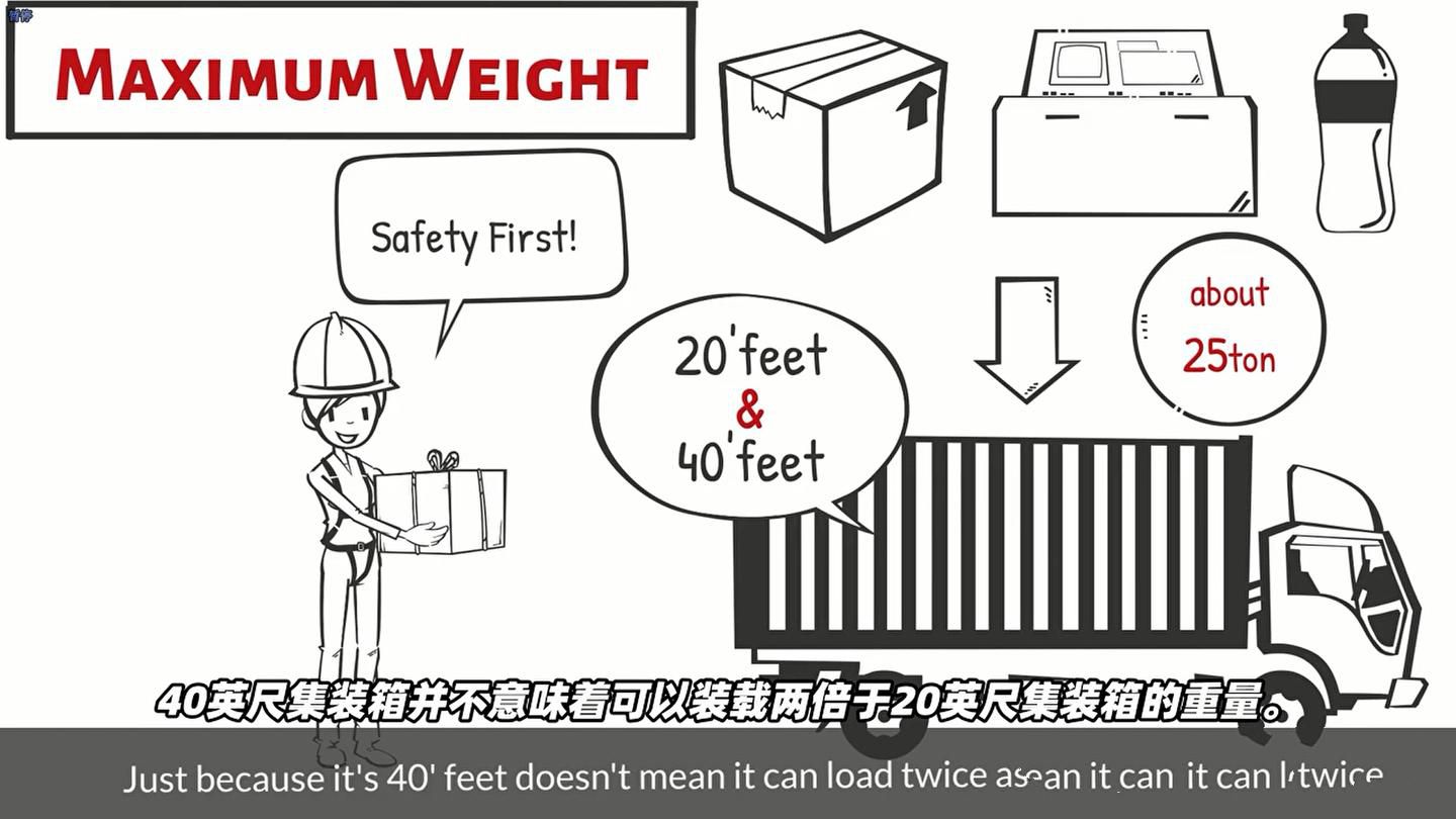 因此,对于20英尺和40英尺集装箱而言,最大货物载荷的重量约为25吨。40英尺集装箱并不意味着可以装载两倍于20英尺集装箱的重量