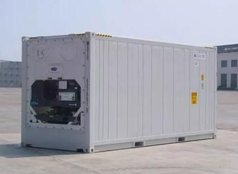 冷冻集装箱(reefer container)分外置和内置式两种。温度可在-60℃ ~ +30℃之间调整。内置式集装箱在运输过程中可随意启动冷冻机,使集装箱保持指定温度;而外置式则必须依靠集装箱专用车、船和专用堆场、车站上配备的冷冻机来制冷。这种箱子适合在夏天运输黄油、巧克力、冷冻鱼肉、炼乳、人造奶油等物品。