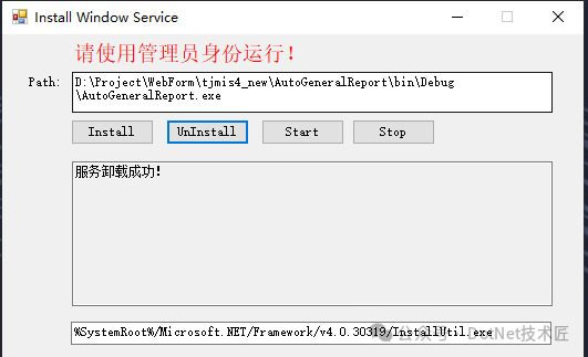 [点晴永久免费OA]InstallWindowService:开源免费的图形化操作 Windows 服务工具(安装/卸载/启动停/止)