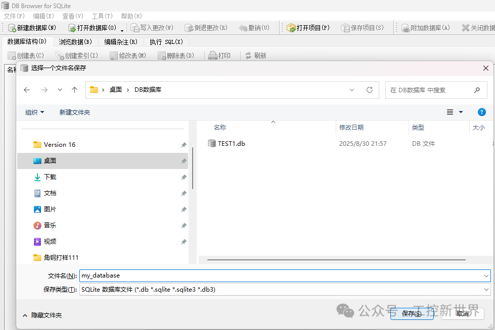选择一个存储位置并为新数据库指定一个文件名(例如:my_database.db),然后点击 "保存"