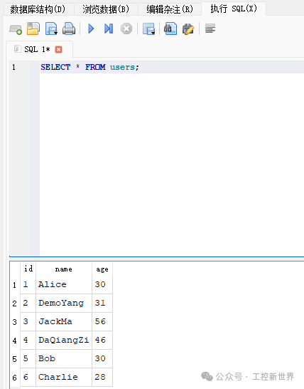 执行查询后结果: