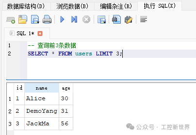表名是 users,字段有 idnameage。下面是一些例子: